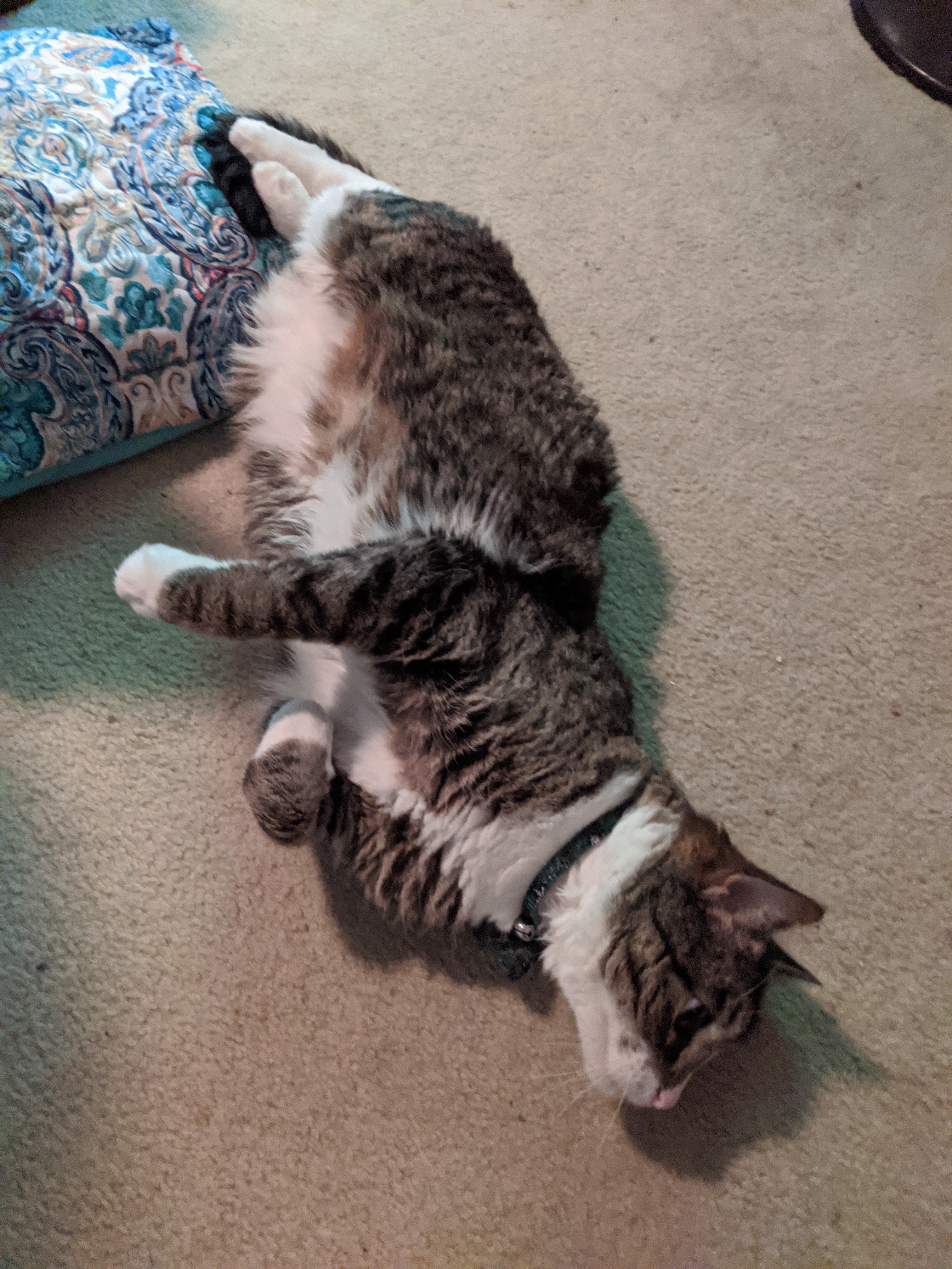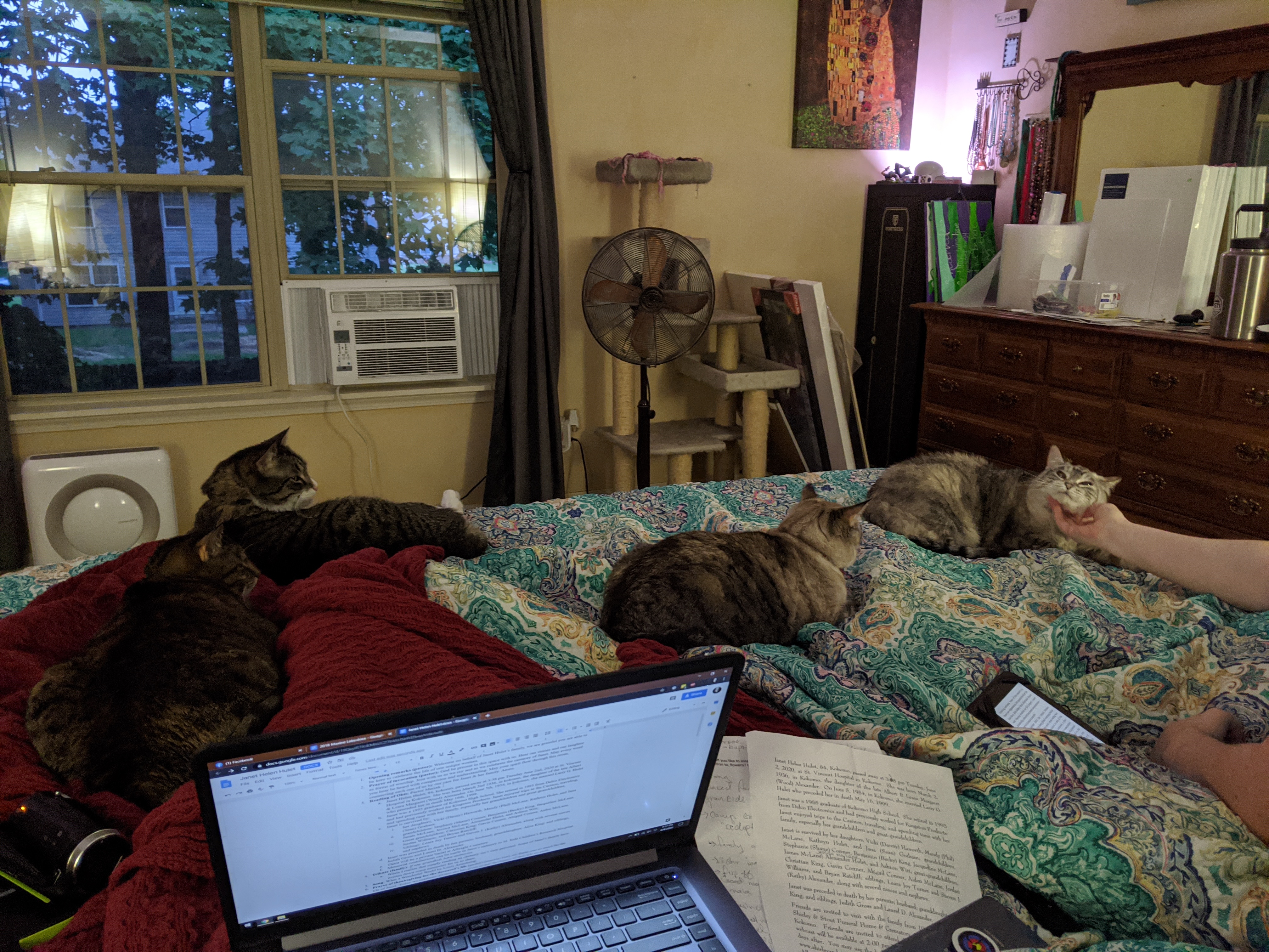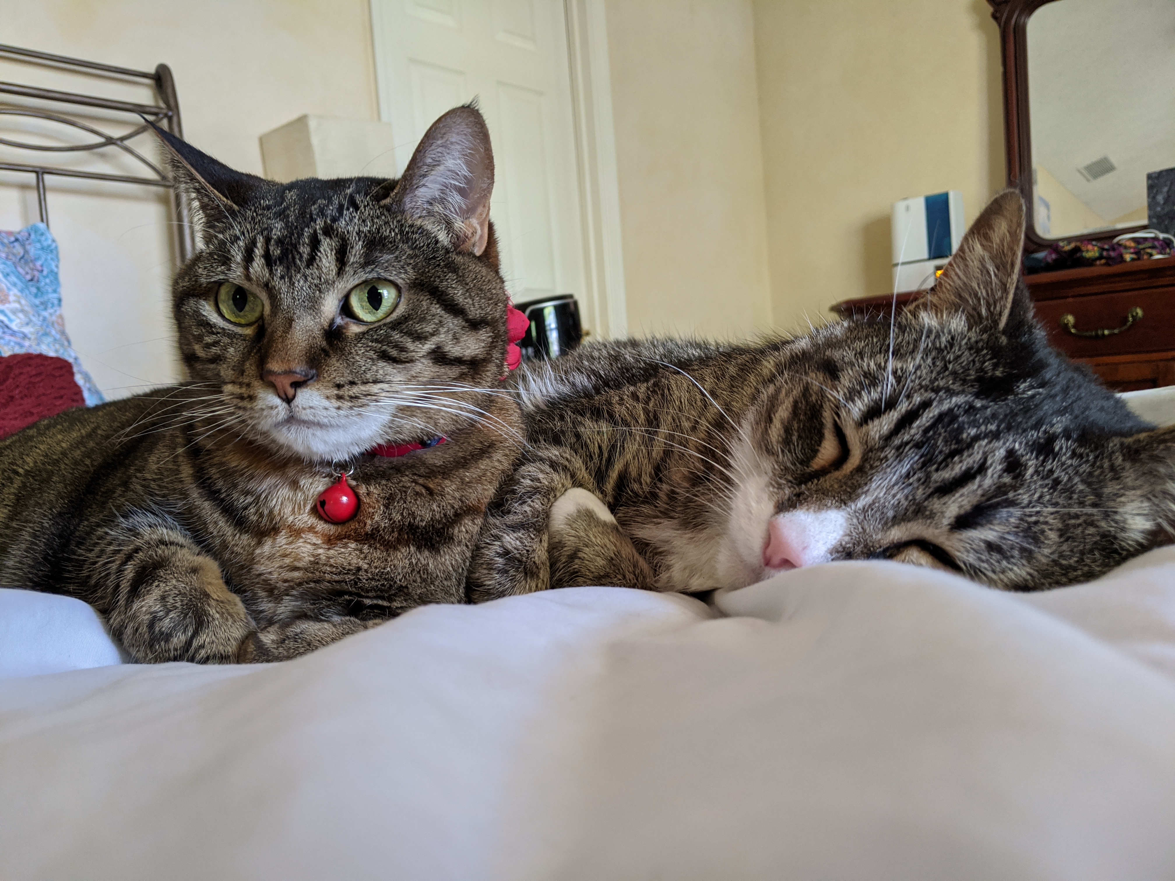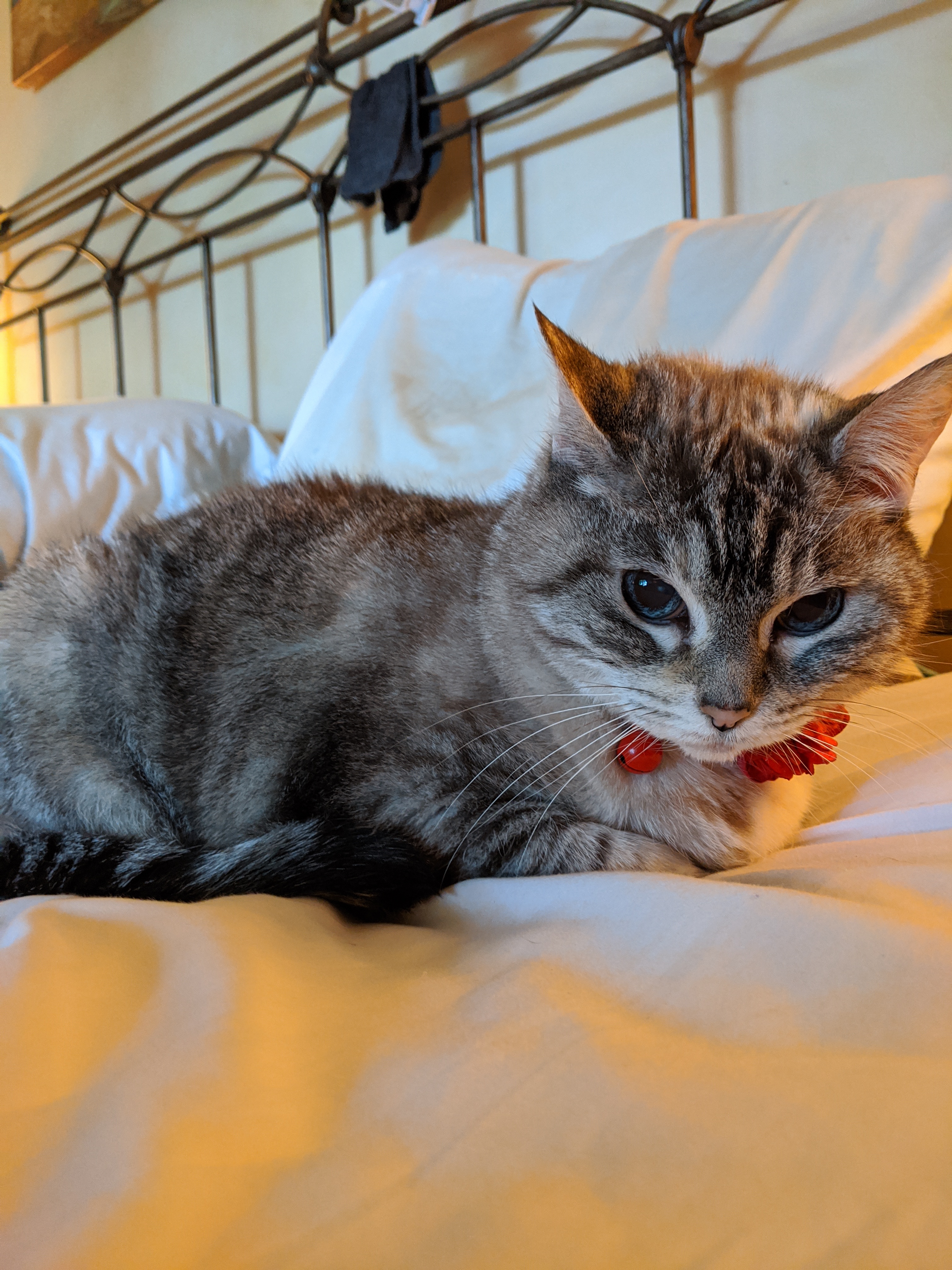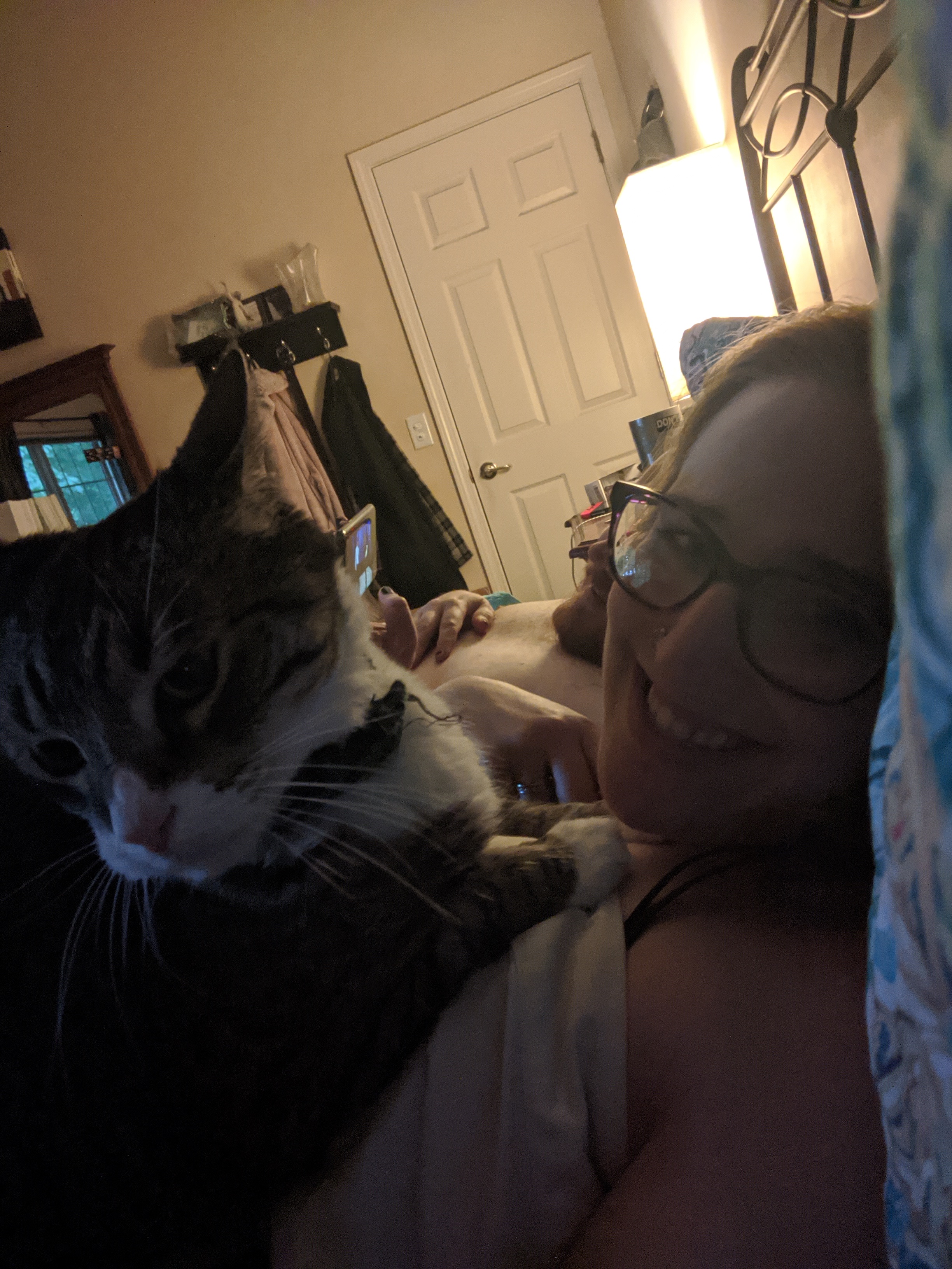 We have 2 dogs: Dexter (a Shih Tzu/Terrier mix), Freyja (a Great Dane). We have 5 cats: St Francis of Assisi (Franny), Martin Luther, Mary Magdalene (Maggie), St Hildegard of Bingen (Hilde), and Gomez. We also have 8 chickens.