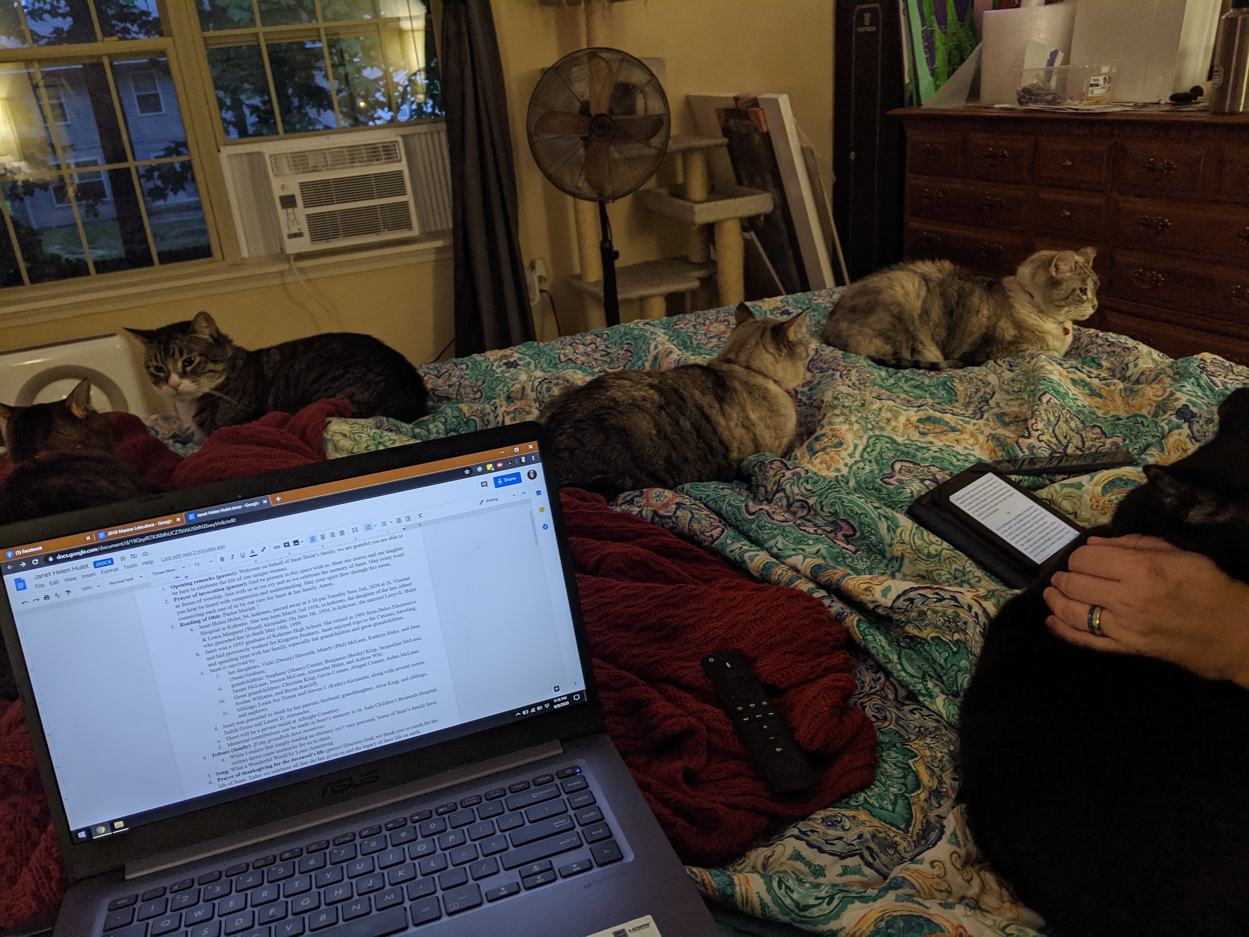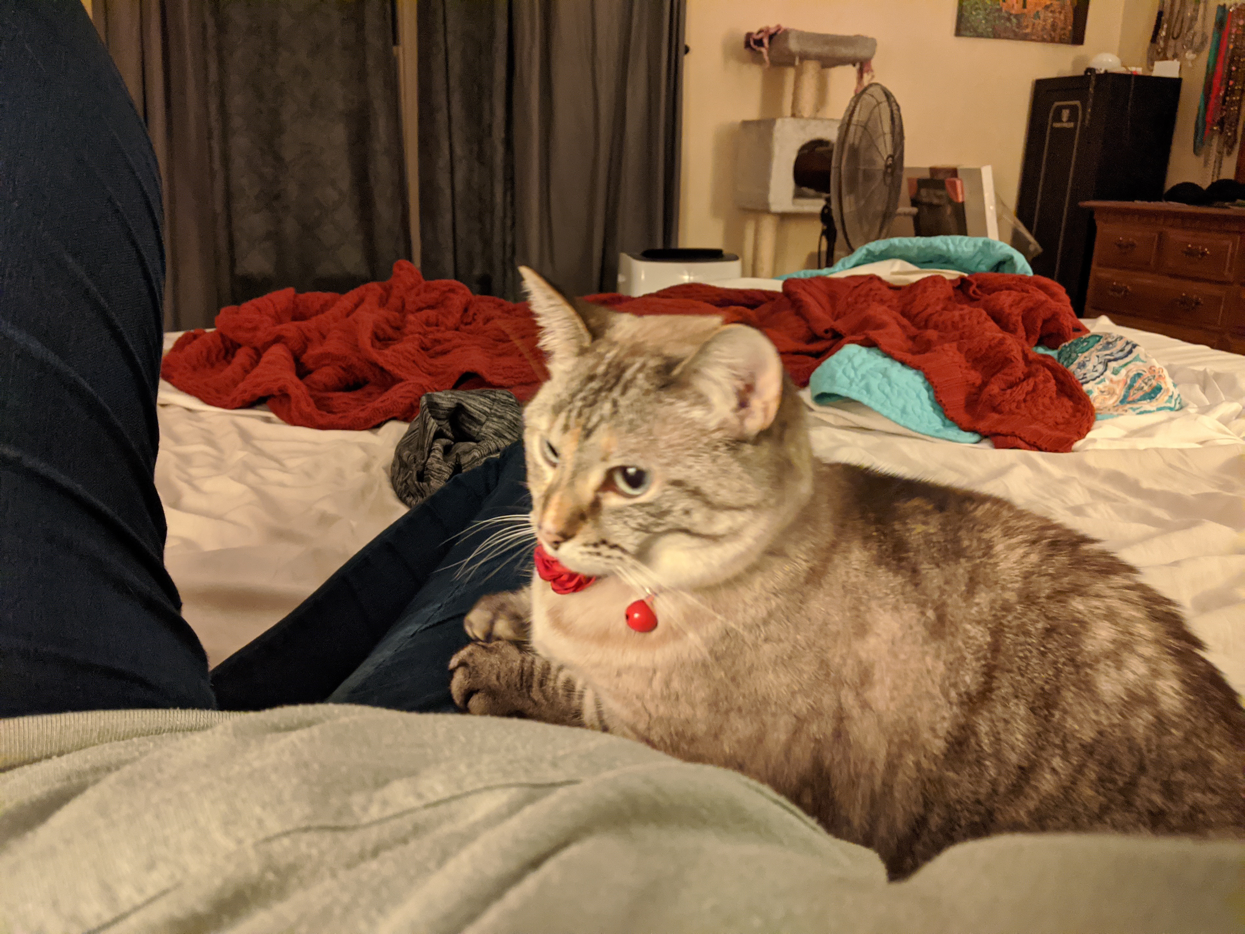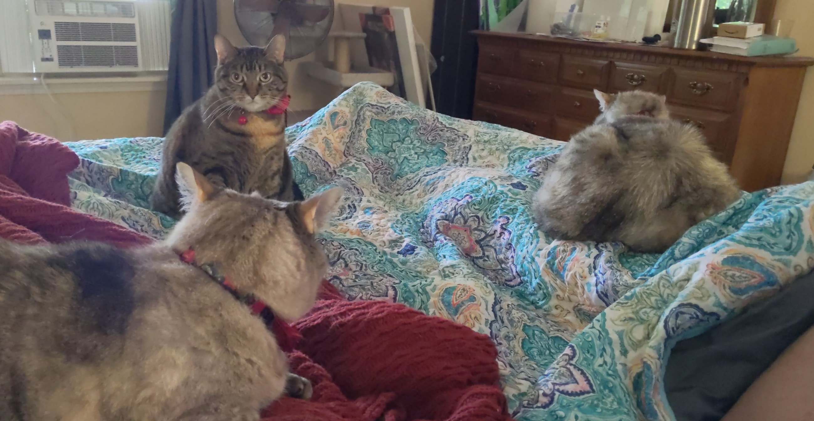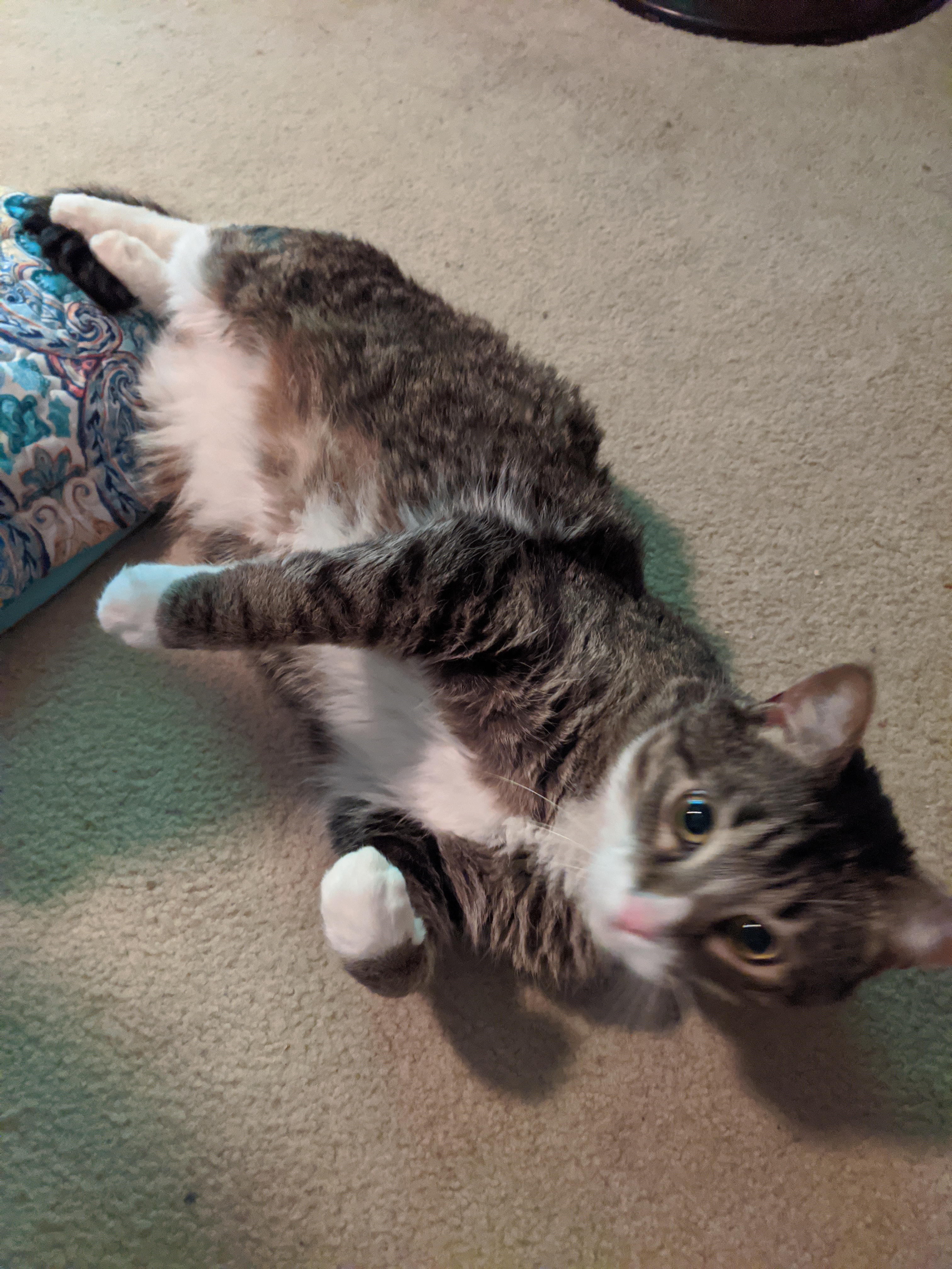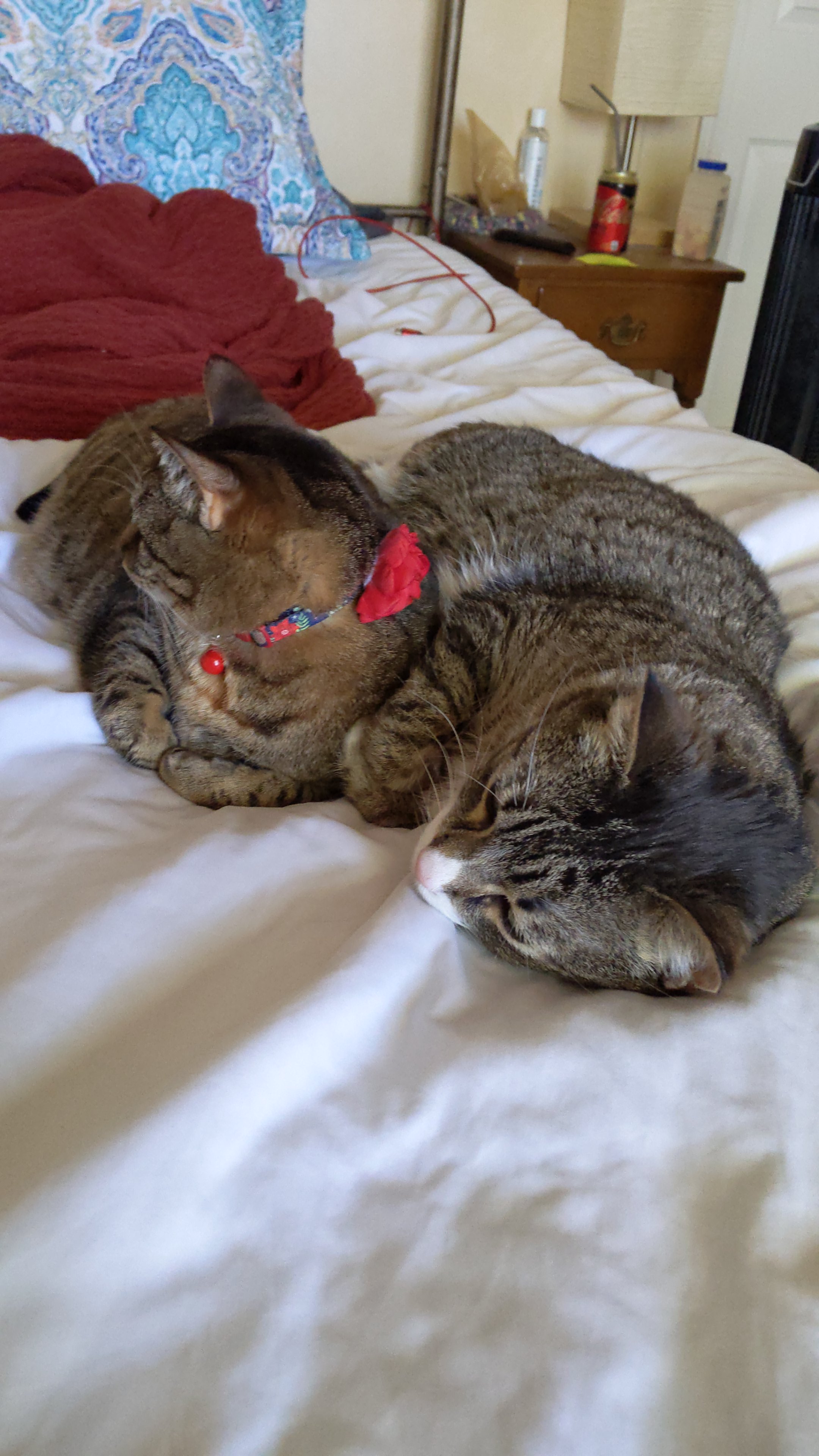 We have 2 dogs: Dexter (a Shih Tzu/Terrier mix), Freyja (a Great Dane). We have 5 cats: St Francis of Assisi (Franny), Martin Luther, Mary Magdalene (Maggie), St Hildegard of Bingen (Hilde), and Gomez. We also have 8 chickens.