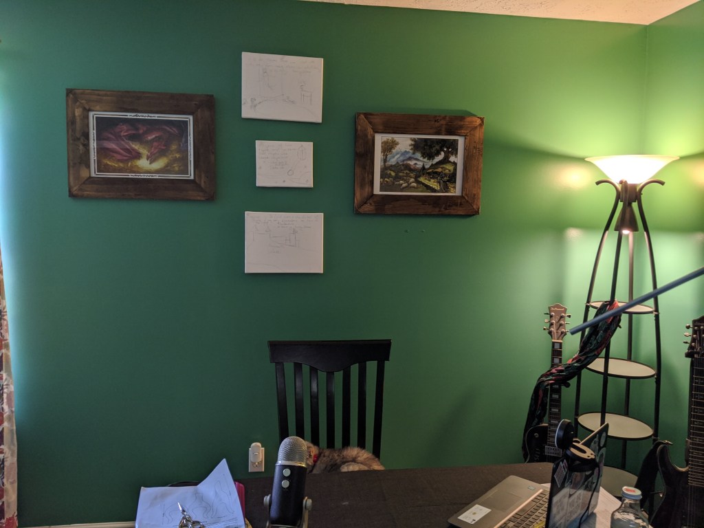 We gathered things that we had already on hand that would prepare our little one for an adventure. Swords, a wizards staff, etc. Then I planned out some art I wanted to make which would incorporate some of my favorite quotes from books.