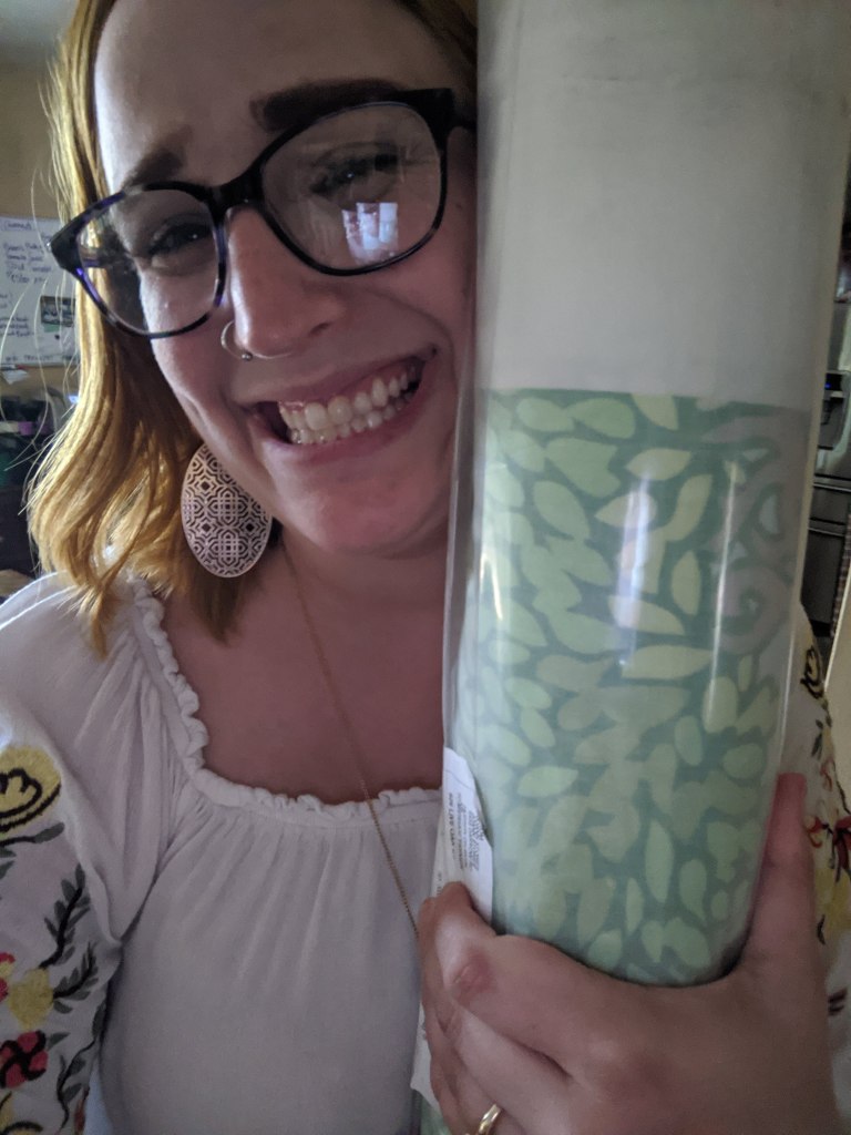 I ordered fabric through JoAnn’s. Real talk: This chair & this room is for a some-day baby. Nope, we aren’t pregnant right now… but that doesn’t mean I can’t plan and set up this room now. Right? So when I say I ordered fabric. I ORDERED A TON! Yep I got 10 yards of this fabric. This room is going to be full of this stuff!!!