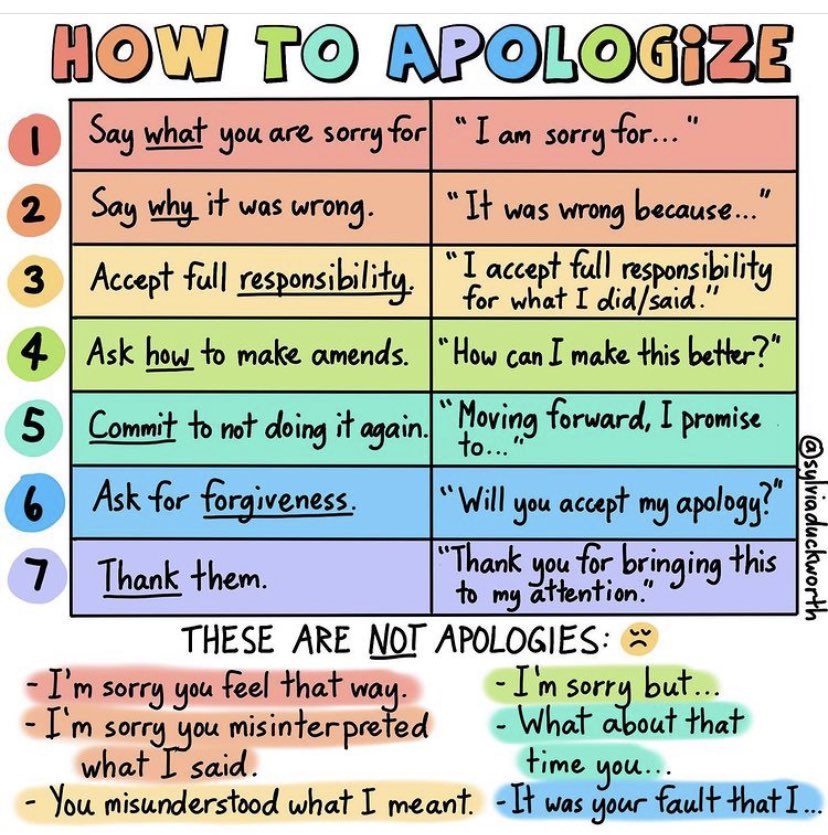 - Apologizing isn’t JUST saying “I’m sorry” and it definitely isn’t excusing away your words or actions.